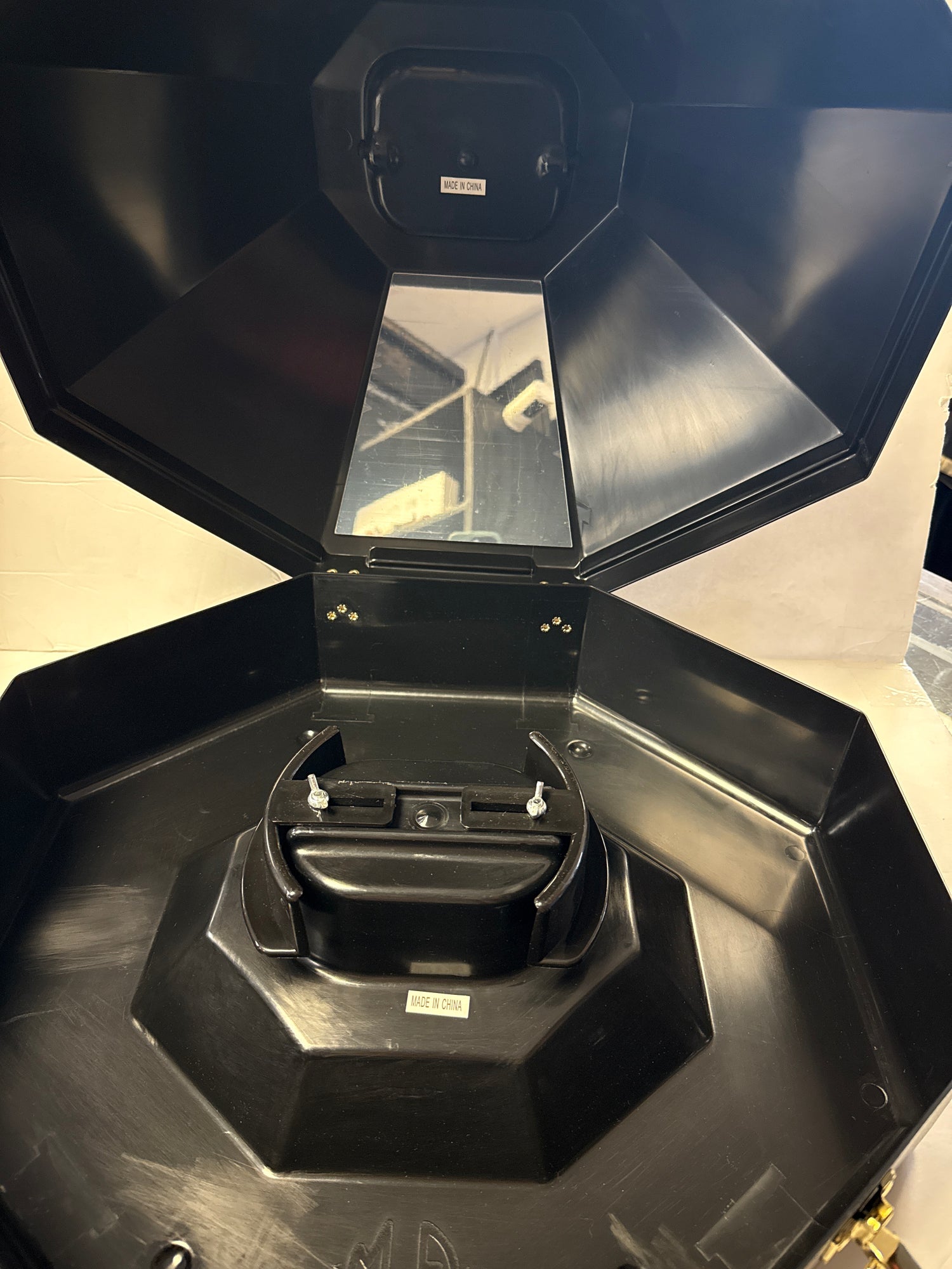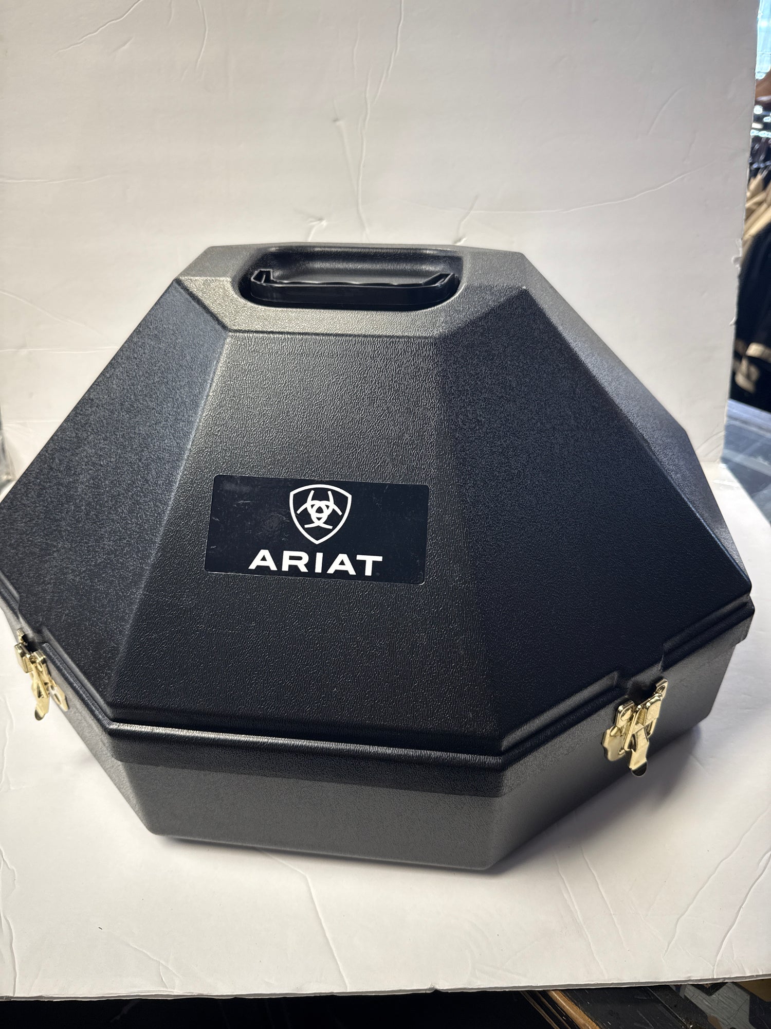 Ariat large hat case designed to fit and protect your wide-brim hat. Durable construction , easy-carry handle, and bold Ariat logo. (Estuche Ariat para texana grande, resistente y espacioso, con cierre seguro , asa práctica y logotipo destacado