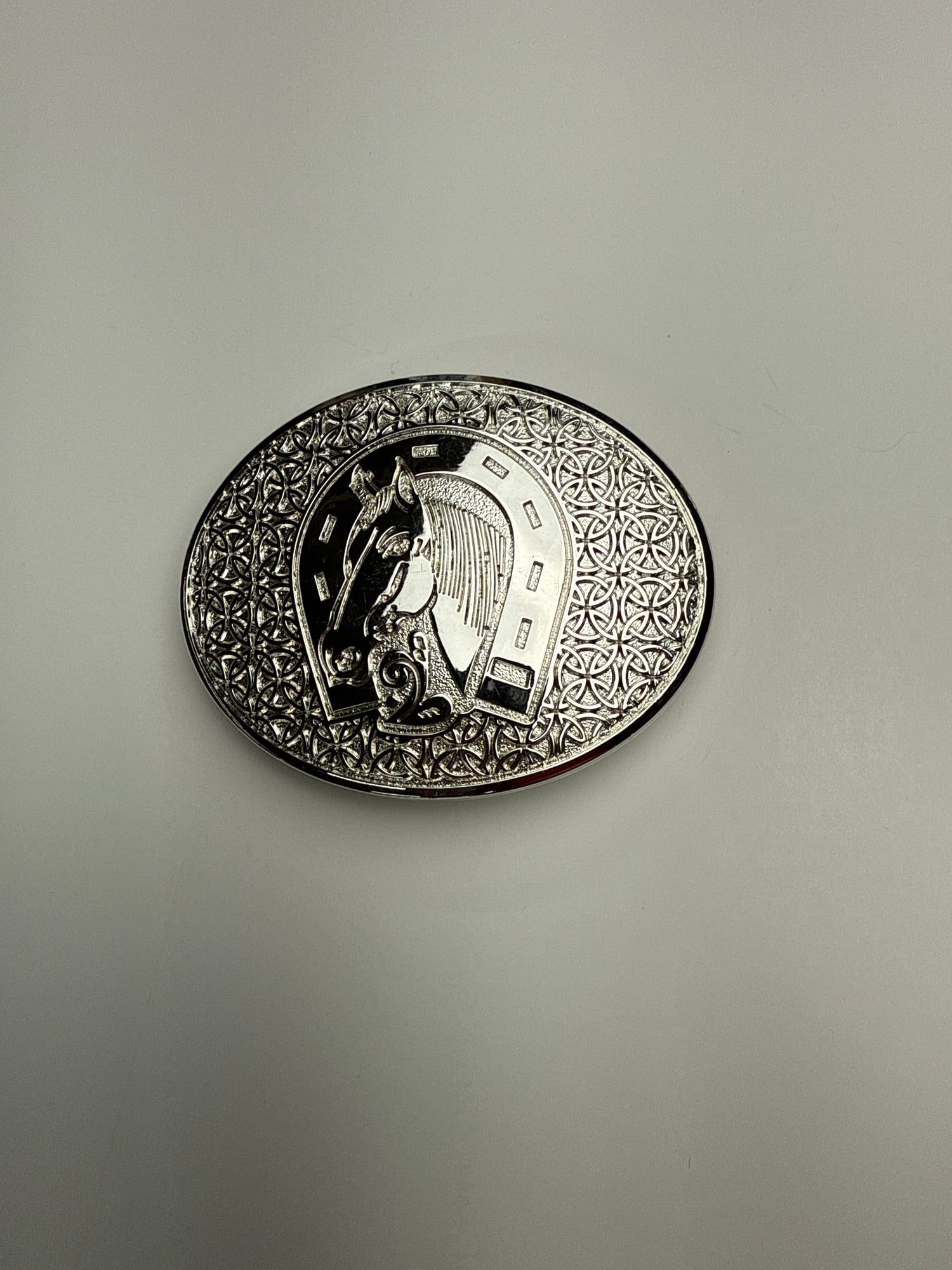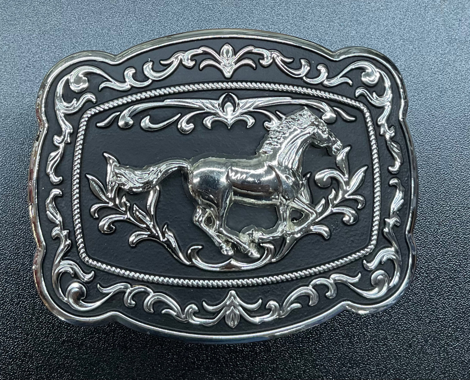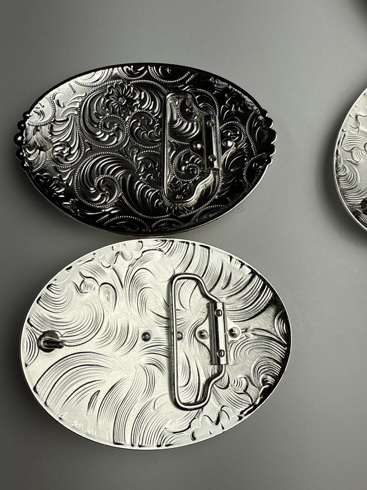 Square & oval western buckles with a chrome finish, available in a variety of decorative designs. Perfect for western-style belts, rodeo fashion, and cowboy accessories. Durable, shiny, and full of character.