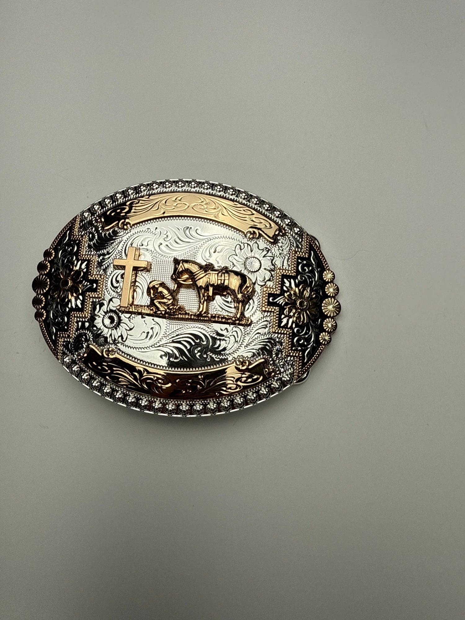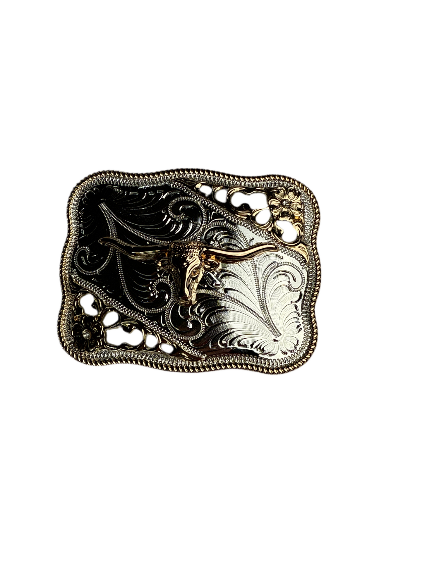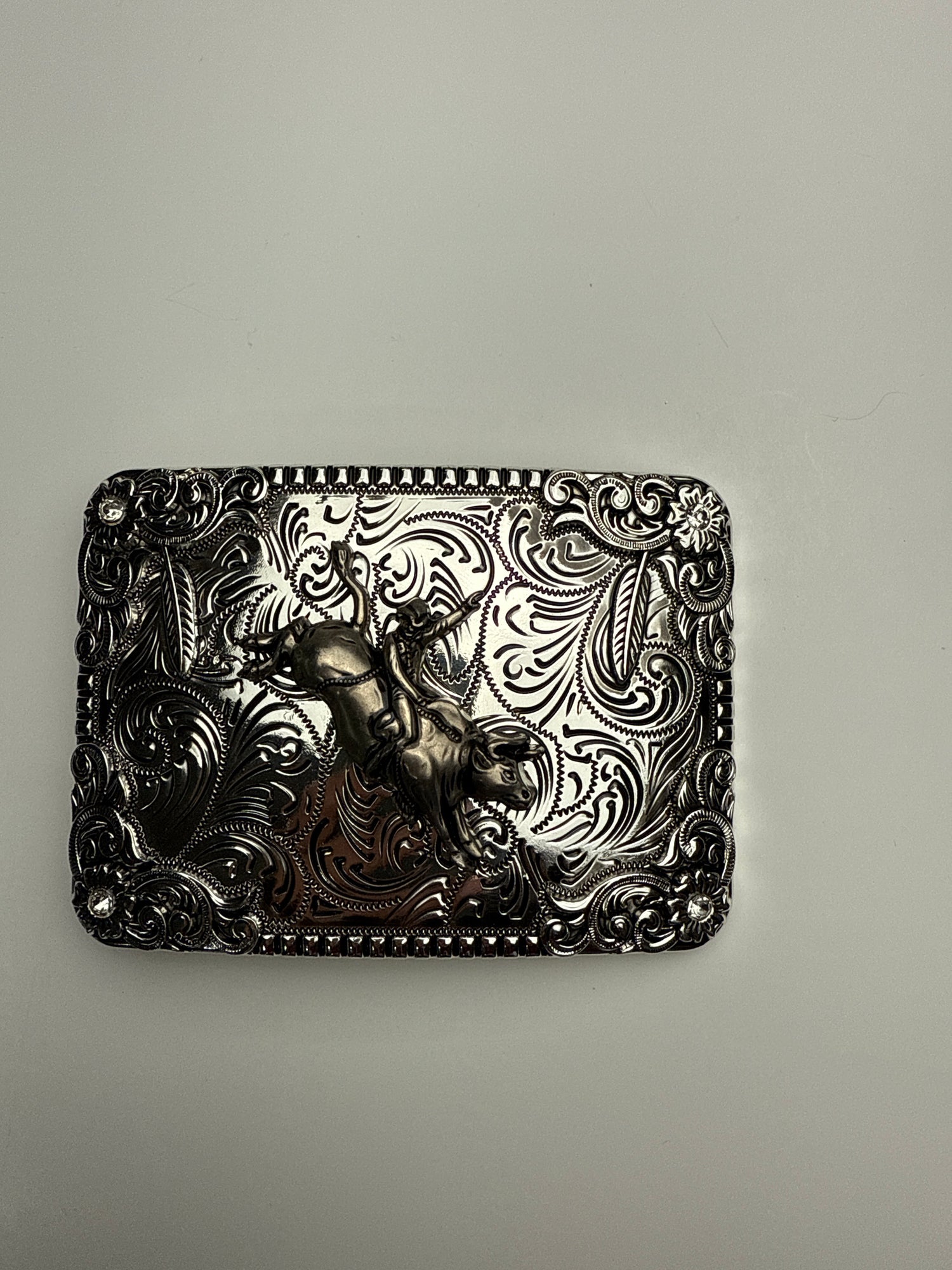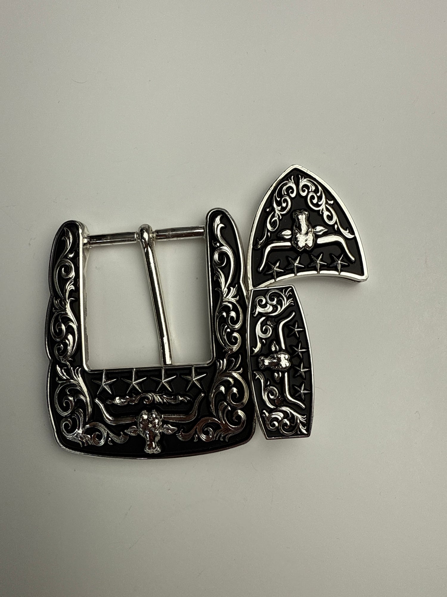 Square & oval western buckles with a chrome finish, available in a variety of decorative designs. Perfect for western-style belts, rodeo fashion, and cowboy accessories. Durable, shiny, and full of character.