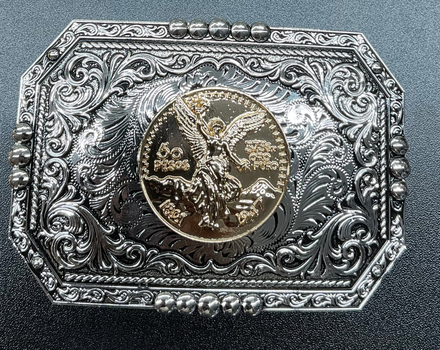 Hebillas vaqueras cuadradas y ovales con acabado cromado, disponibles en distintos diseños decorativos. Perfectas para cinturones western, estilo rodeo y accesorios vaqueros. Fuertes, brillantes y con personalidad única.