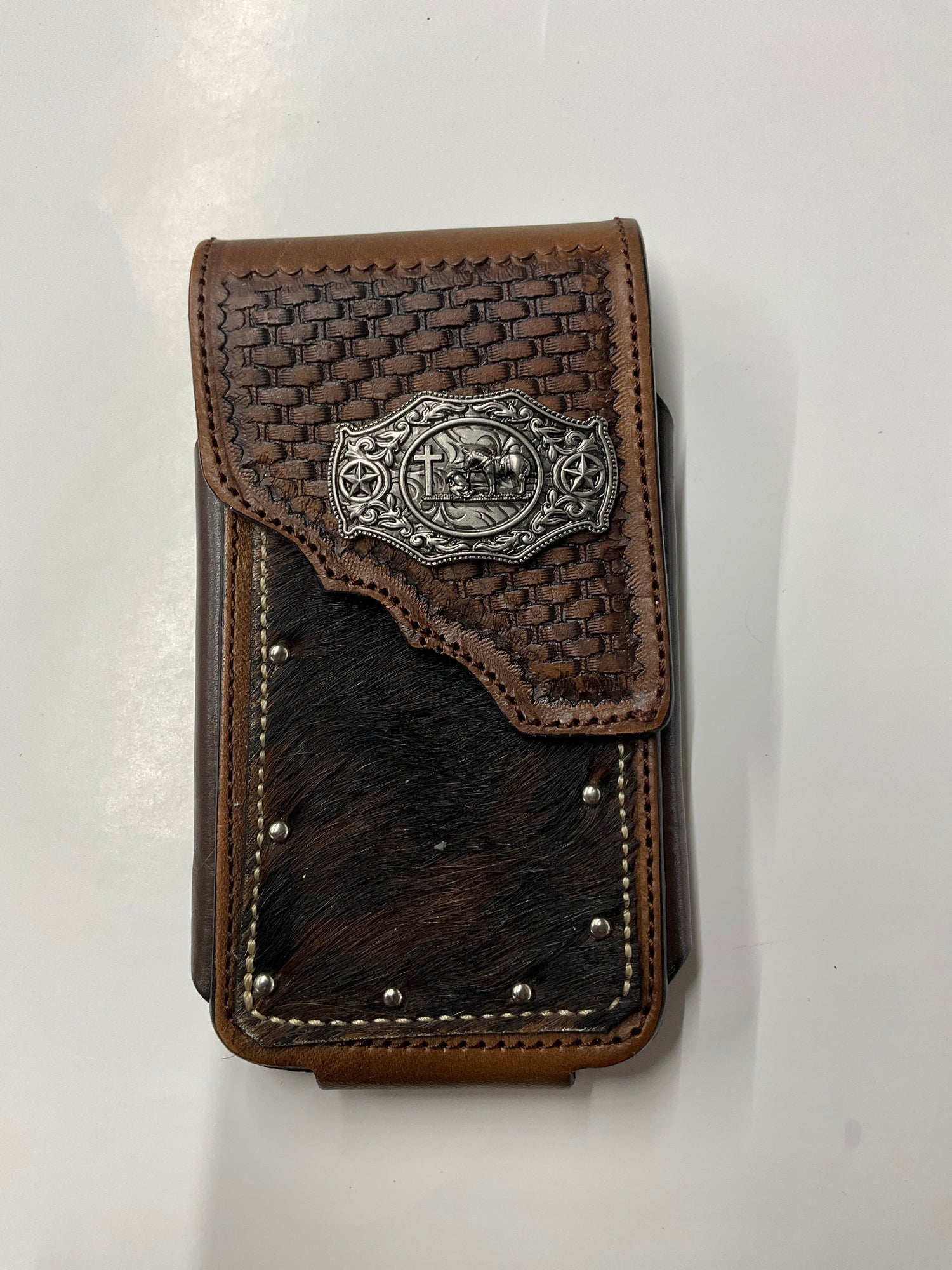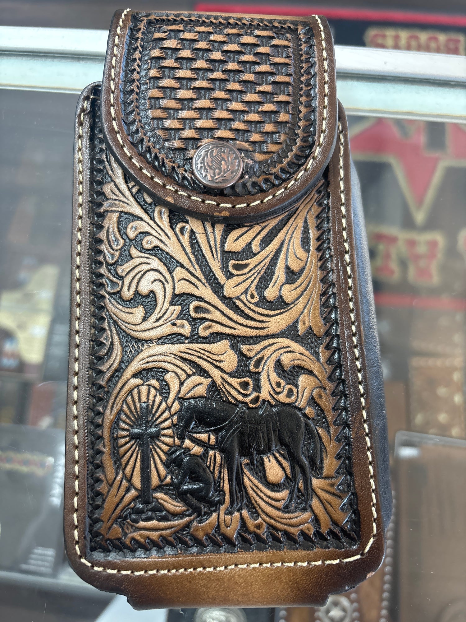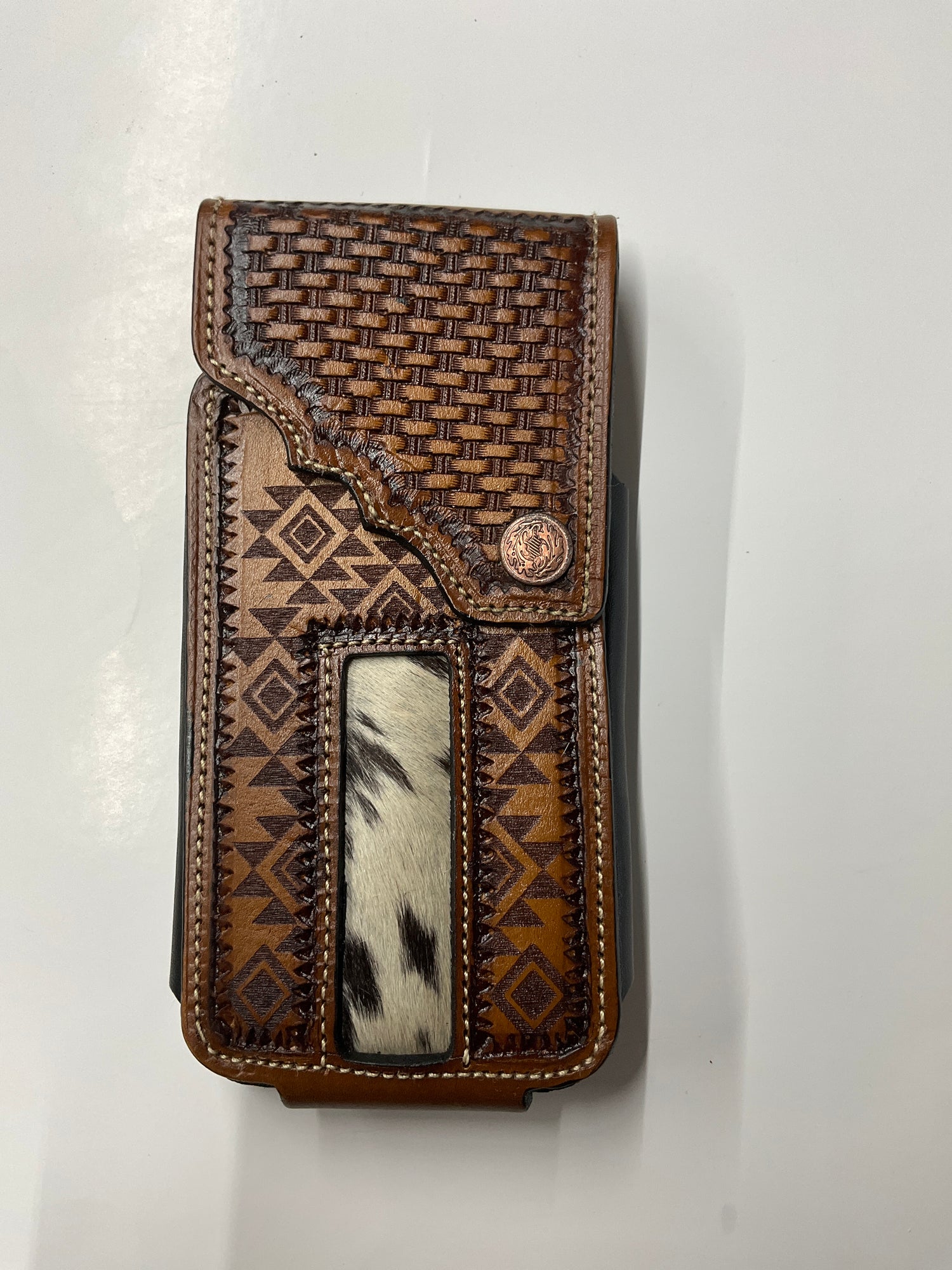 Tooled leather and cowhide cell phone case — unique, stylish, and protective.