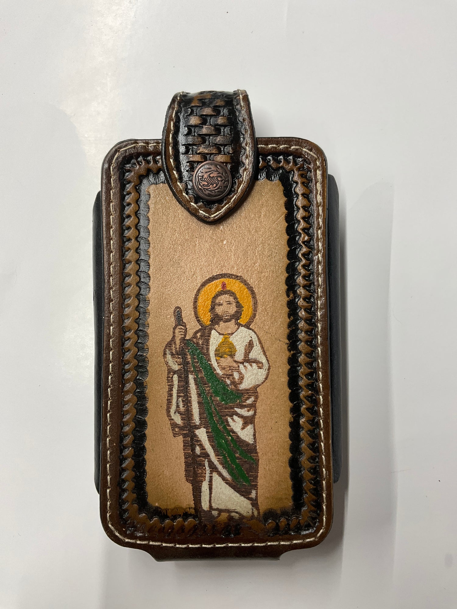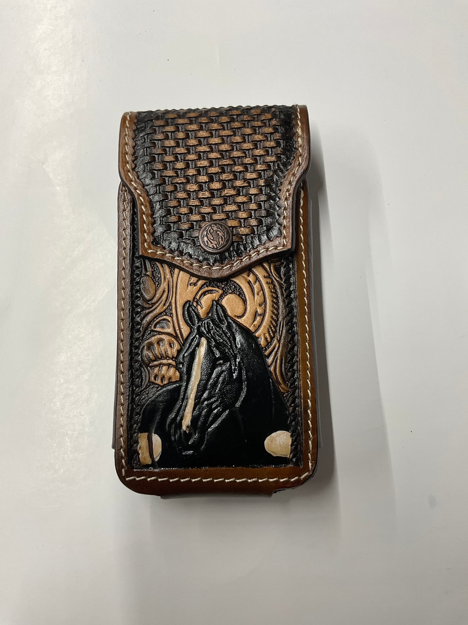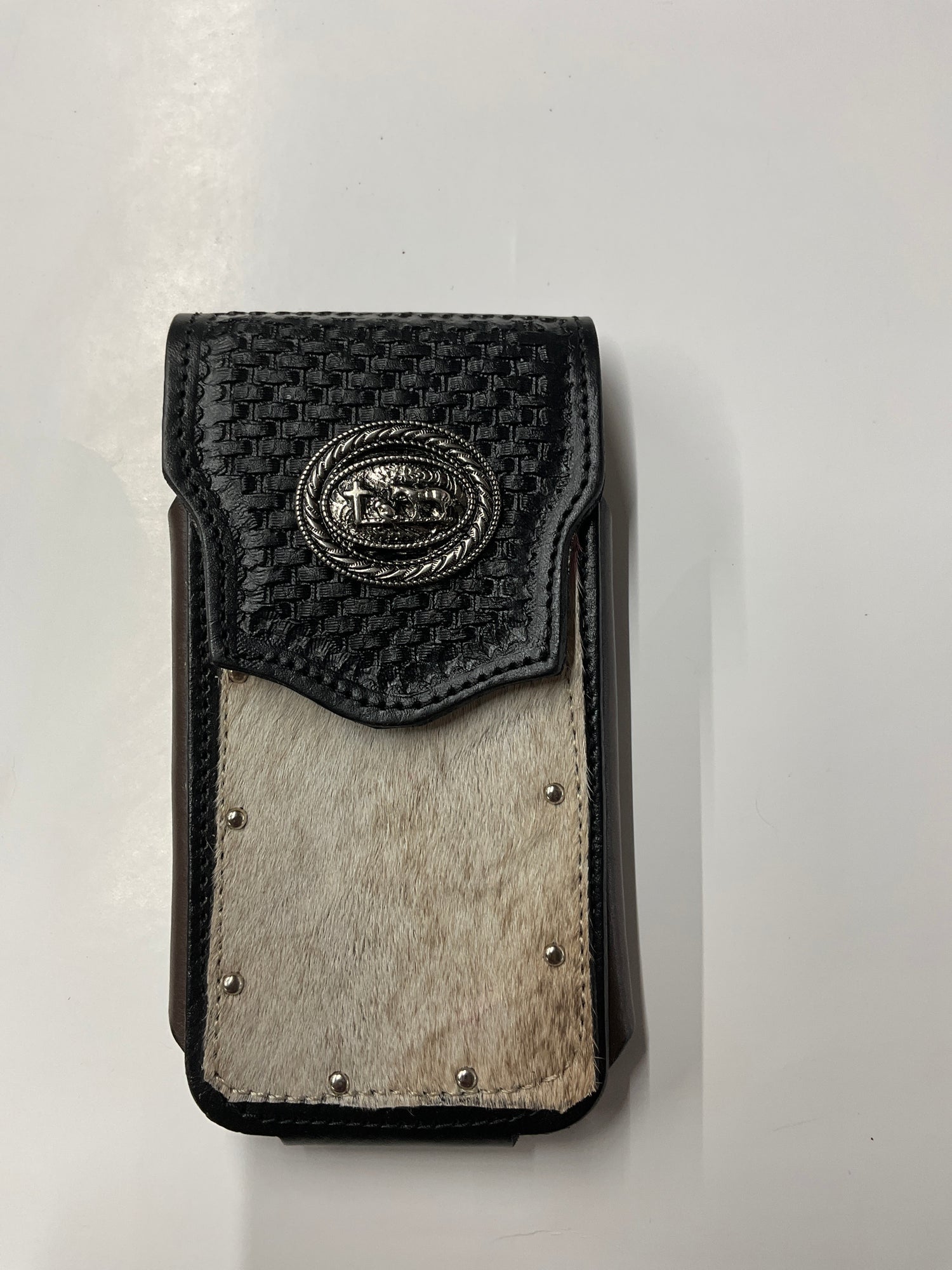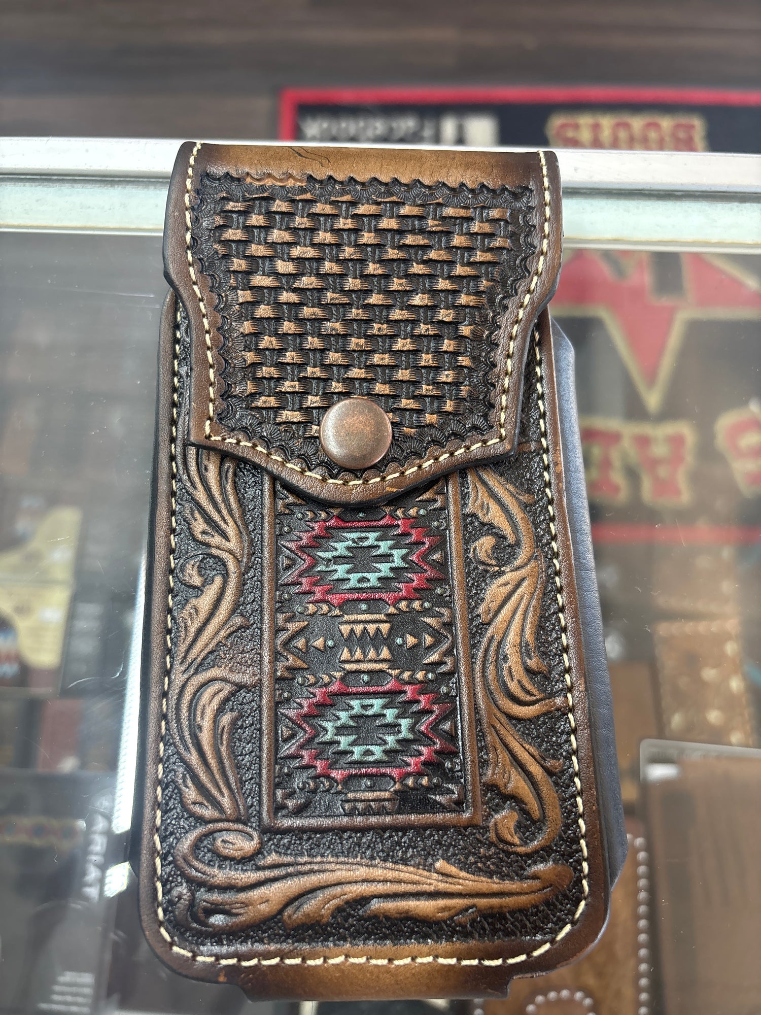 Tooled leather and cowhide cell phone case — unique, stylish, and protective.