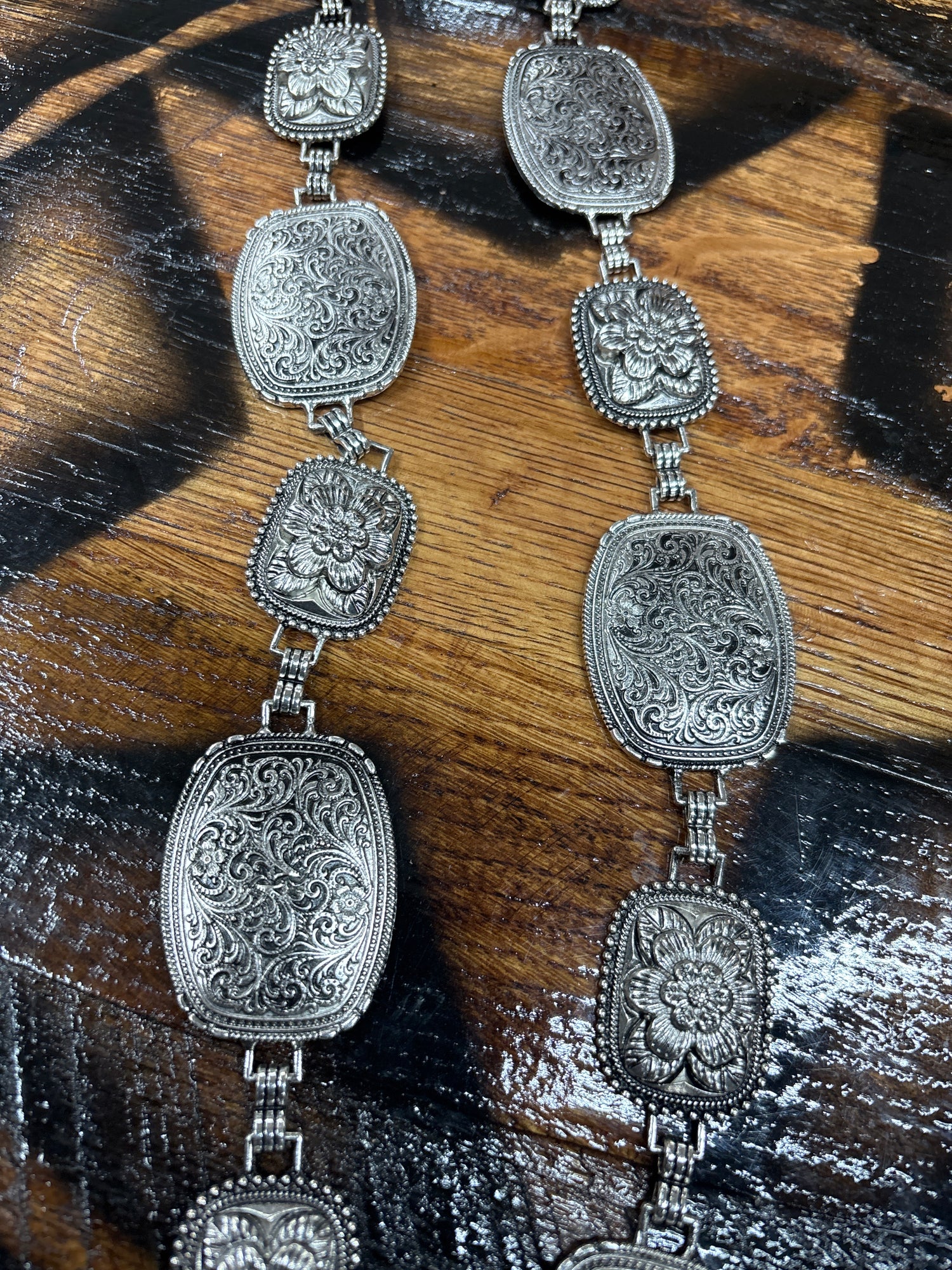 Women’s Belt with Roses – Silver. Elegant silver belt featuring rose designs for a feminine and stylish Western touch.