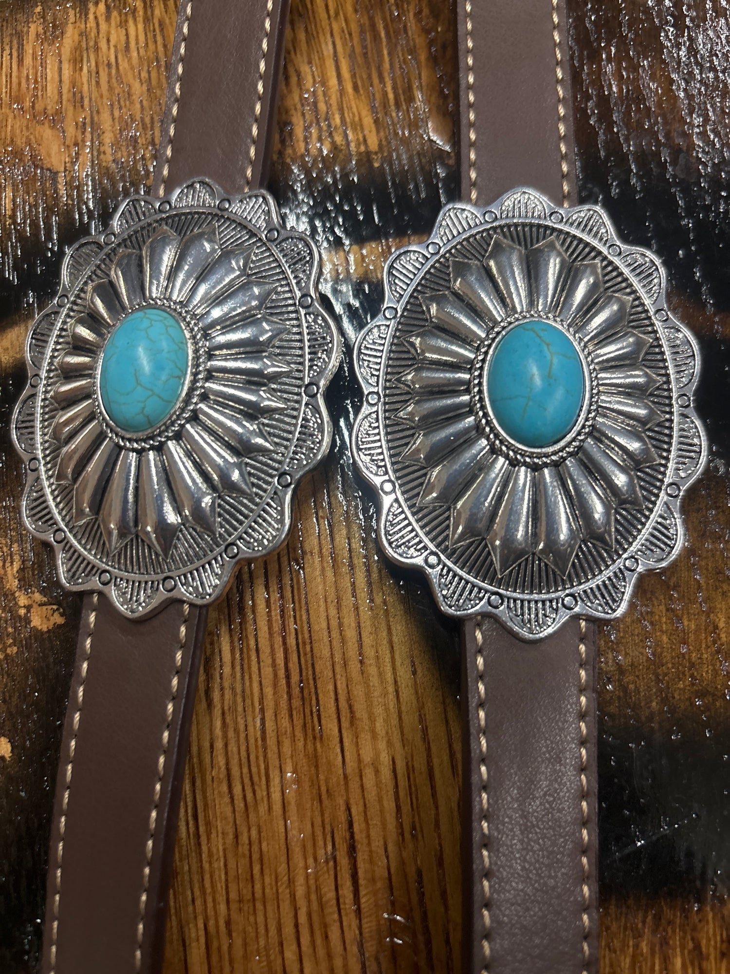 Cinto/Belt Mujer/Women Turquoise Stone Brown And Silver