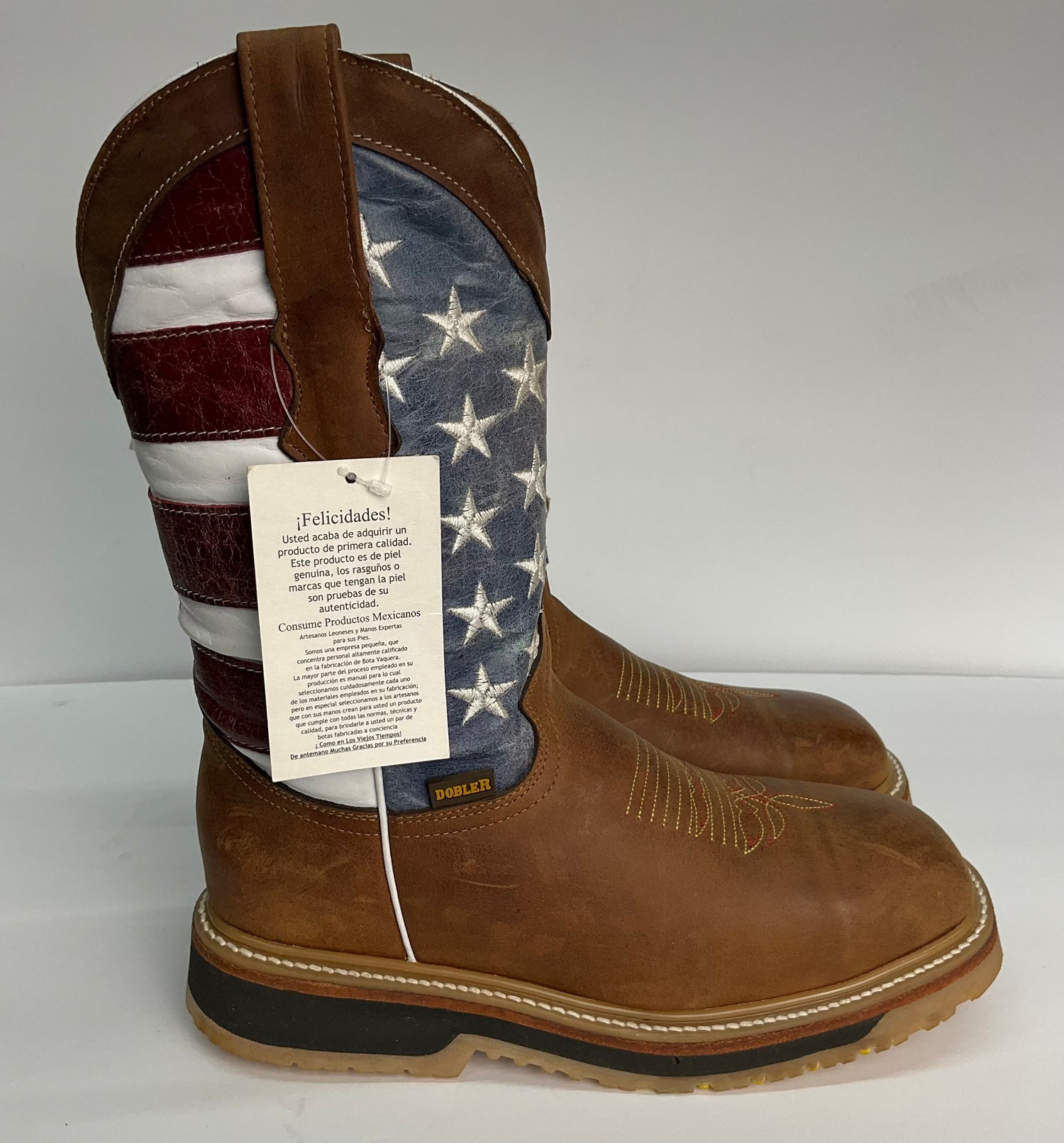 Luce con estilo con estas botas de piel café con tubo de bandera americana. Resistentes, llamativas y con puro orgullo vaquero.