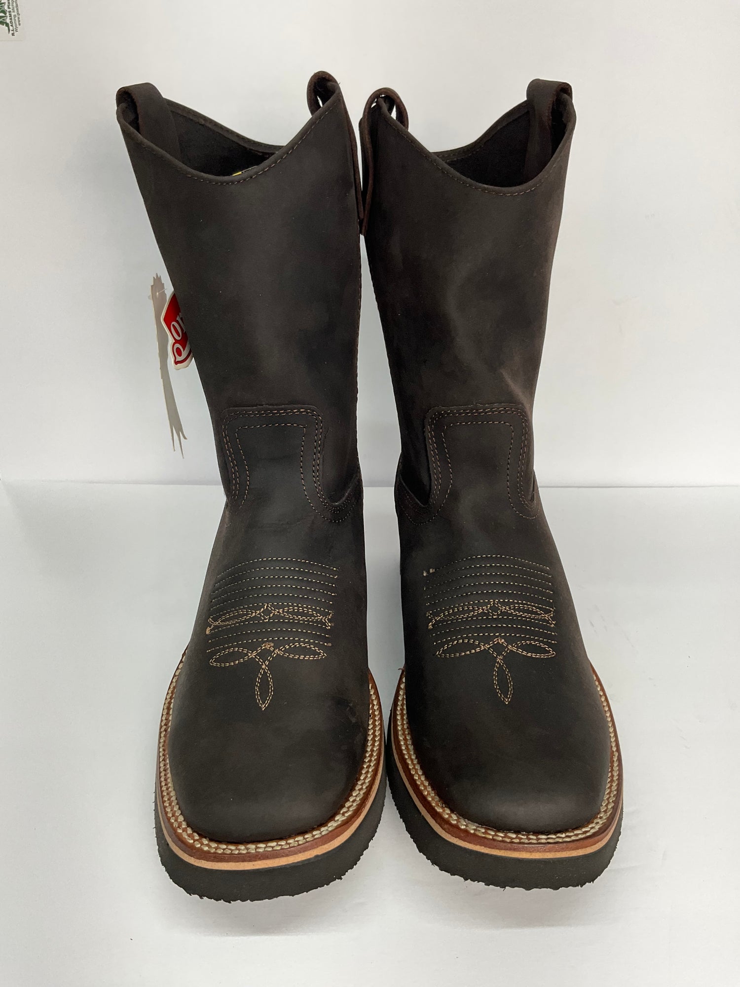Men’s cowboy boot in crazy chocolate. Classic design with decorative stitching and a durable sole. Perfect for everyday wear or stylish outings.