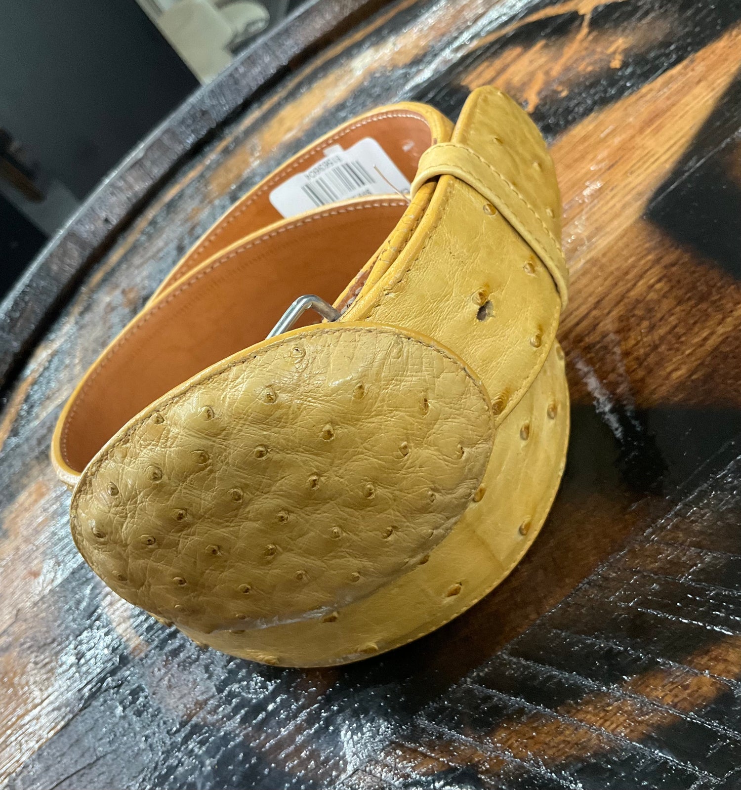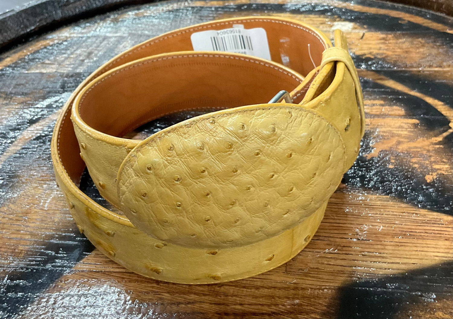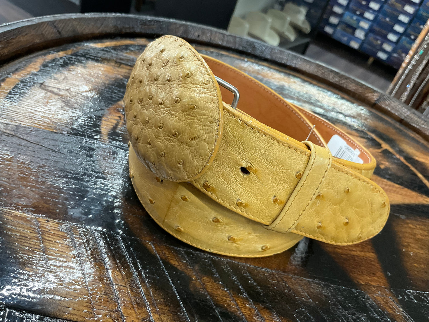 Original ostrich belt in rich butter color with round buckle. Elegant, exotic, and perfect for a standout Western look.