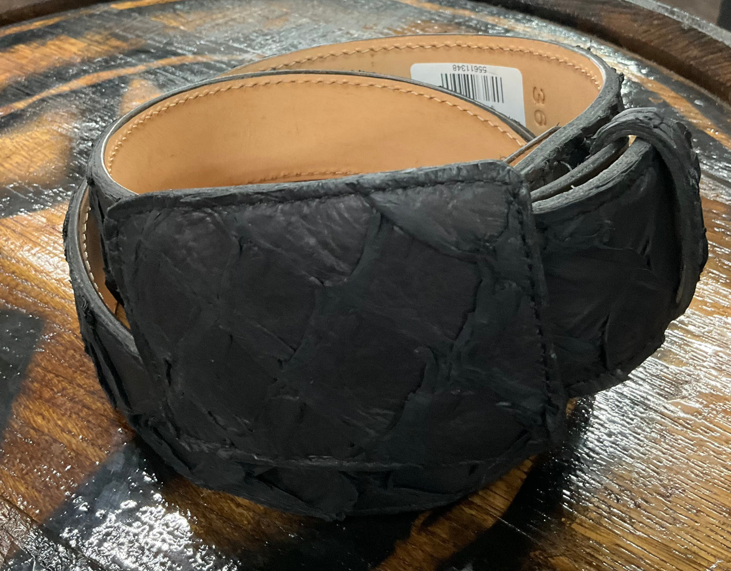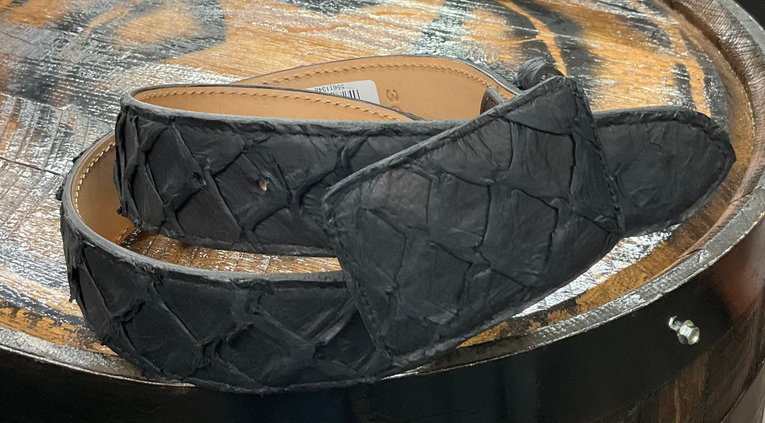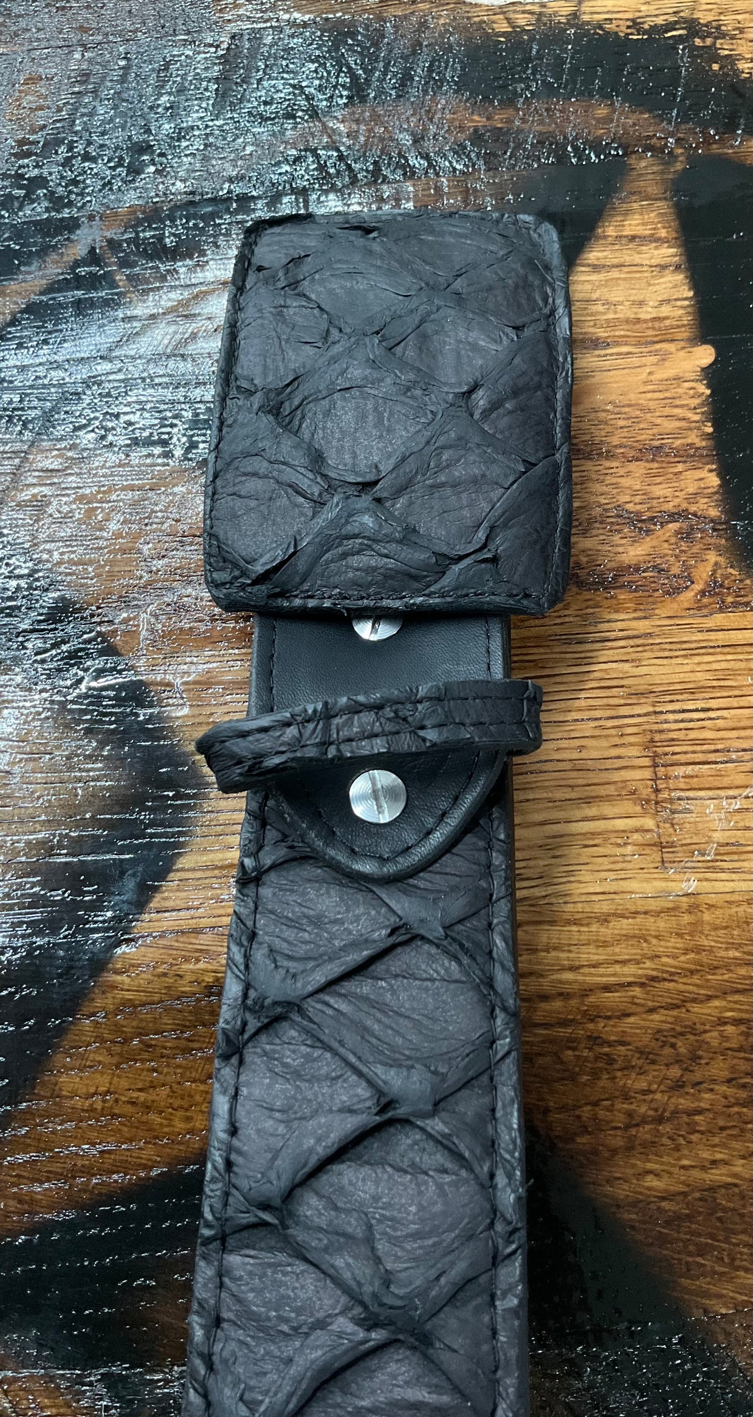 Black belt with rugged fish scale texture and silver rivet accents. Bold, unique, and made for standout Western looks.