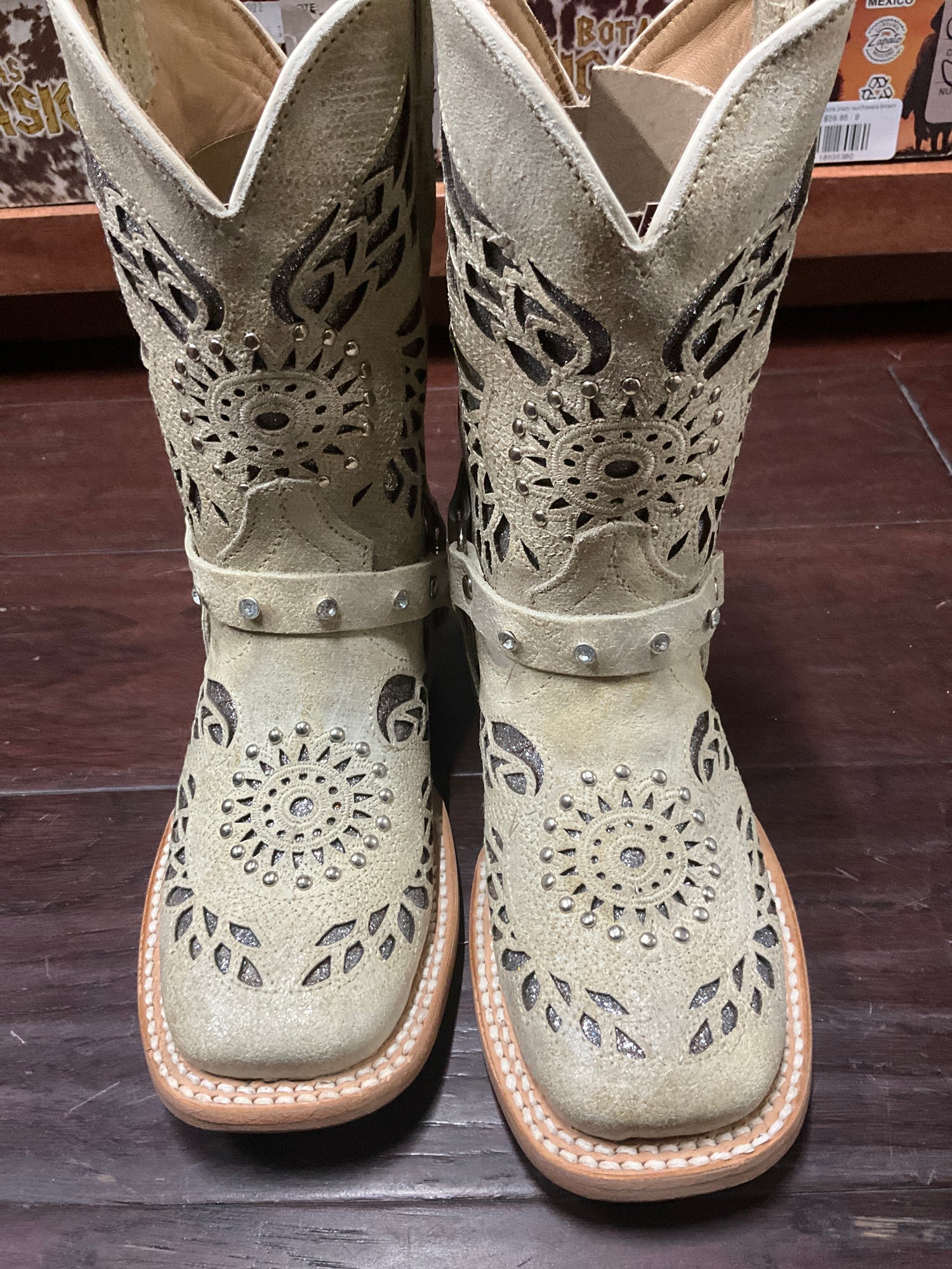 Girls’ boots in bone color with laser-cut Soles design – delicate, stylish, and perfect forany western outfit