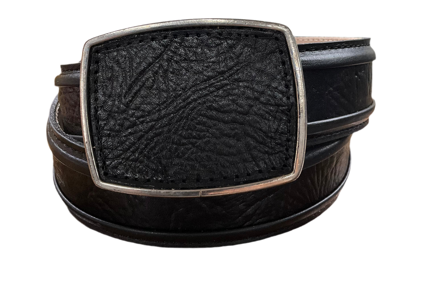 Men’s black leather belt with square buckle – clean, bold, and built for classic western looks.