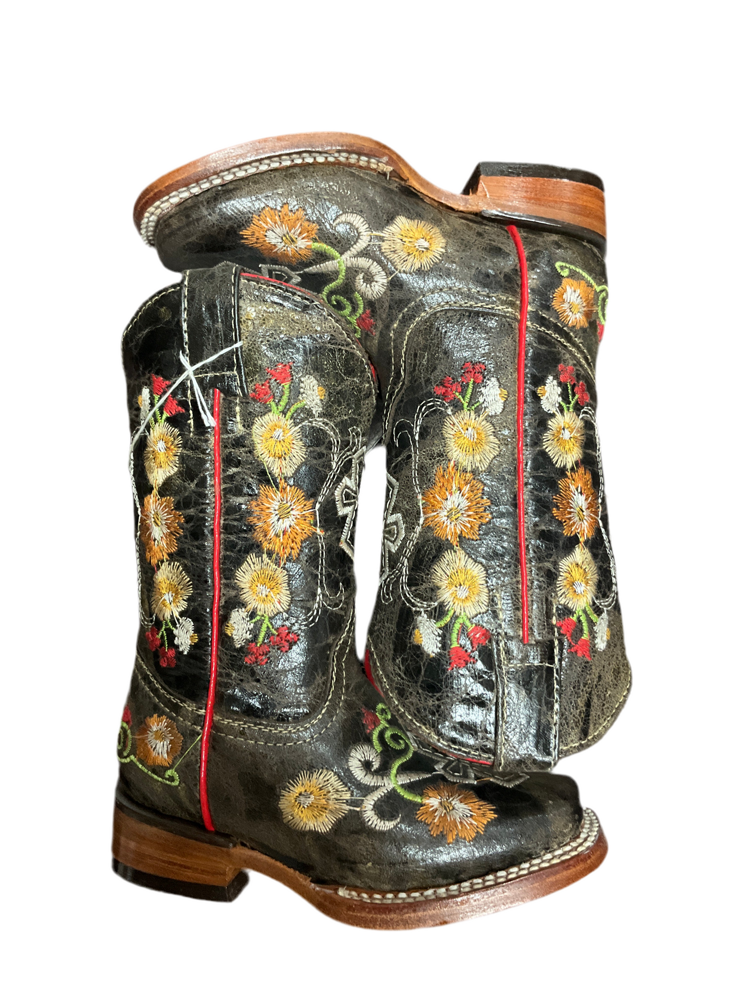 Ok coral Kids (Girls) Boots Clearance Final Sale/Last pair cross Floral square-toe